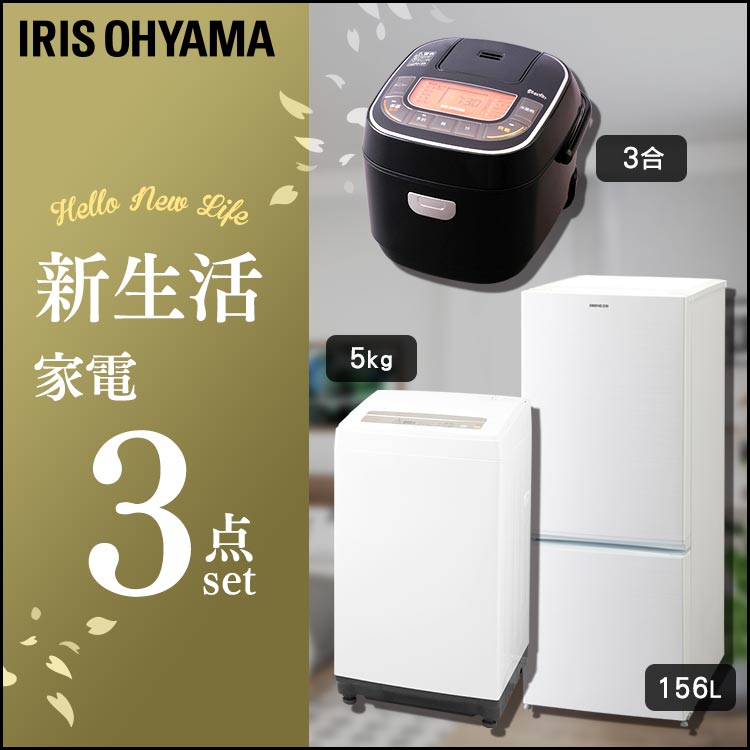 家電セット 新生活 3点セット 冷蔵庫 156L + 洗濯機 5kg + 炊飯器 3合 家電セット 一人暮らし 新生活 新品 アイリスオーヤマ [◇P2]