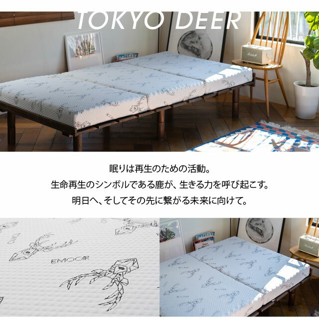 三つ折り マットレス ダブル 極厚 11cm 高反発 かため ウレタン 凹凸 側生地 洗える 洗濯可 3つ折り 折りたたみ 移動 収納 便利 メッシュ 敷き 敷 布団 ベッド 負担 分散 軽減 リラックス グレー ネイビー 虎 鹿 北欧 おしゃれ 新生活 【送料無料】 エムール
