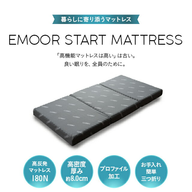 マットレス シングル 三つ折り 高反発 折りたたみ 180N エムールスタート ベッド用 床用 敷き布団 ふとん ウレタンマットレス ベッドマットレス 体圧分散 蒸れない 寝返り 通気性 新生活 【送料無料】 エムール