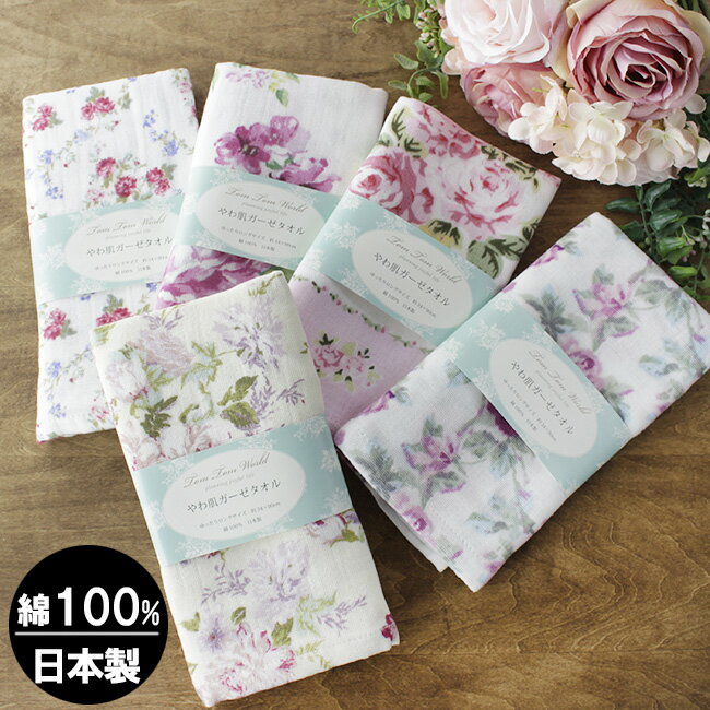 プレゼント ギフト フェイスタオル やわ肌ガーゼ 日本製 メール便可 人気 薔薇雑貨 マフラータオル 花柄 おしゃれ マスク手作りにも